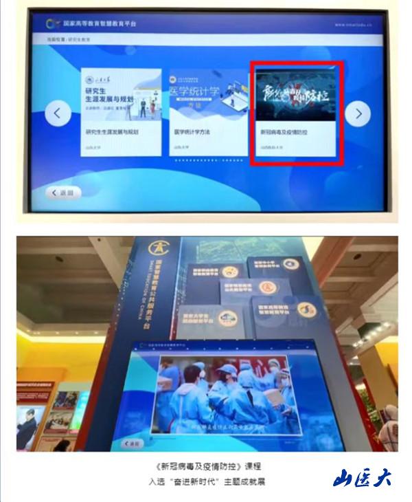 “奋进新时代”主题成就展聚焦新时代10年党和国家事业的伟大成就、伟大变革,展出了系列战略性举措、变革性实践、突破性进展和标志性成果。《新冠病毒及疫情防控》课程由我校聂继盛副院长领衔,王素萍、张红梅、张缭云、黄彤、余红梅、邬惟为、冯永亮、李之垚、张培芳、李小梅老师共同参与讲授,携手“学堂在线”慕课制作团队共同打造。主讲教师团队参与了山西、广西等多个省市区的疫情研判,把抗疫的实践和思考带入了课堂。目前,该课程已上线 “学堂在线”网站。