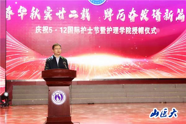 在第112个国际护士节来临之际,为弘扬南丁格尔精神,激励学生继承和发扬护理事业的光荣传统,5月8日上午9时,我校护理学院在中都校区大学生剧场举办“春华秋实廿二载·踔厉奋发谱新篇”庆祝5·12国际护士节暨授帽仪式。校党委书记王军出席活动并讲话,校党委副书记王宏伟、彭月兰,校党委常委、副校长赵文军、成晓龙,学校各职能部门负责人,护理学院全体老师及研究生导师代表出席活动。第43届国际南丁格尔奖章获得者姜小鹰教授,四川大学华西医学院护理学科主任李继平教授,国务院学位办第七届护理学科评议组成员、全国高等院校护理学教材评审委员会副主任委员段志光教授莅临授帽仪式。