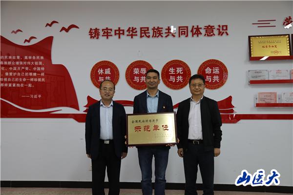 黄杰为我校“红石榴”工作室获批第十批全国民族团结进步示范单位授牌,王军代表学校接牌。
