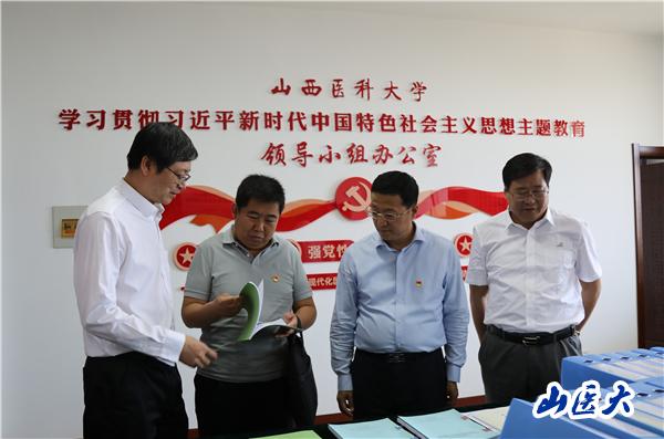 会后,校党委副书记、学校主题教育领导小组第一副组长兼办公室主任王宏伟同赵双义、鲍岩岩前往学校主题教育办公室查阅主题教育理论学习、调查研究、检视整改等方面资料,并与工作人员交流主题教育开展情况。