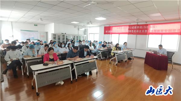 为深入学习贯彻习近平新时代中国特色社会主义思想,6月12日下午,校党委常委、党委副书记王宏伟为口腔医学院师生医护职工讲授主题教育专题党课。口腔医学院领导班子成员、各党支部支委、中层干部、学生党员代表聆听了党课,党课由口腔医学院党委书记任秀云主持。