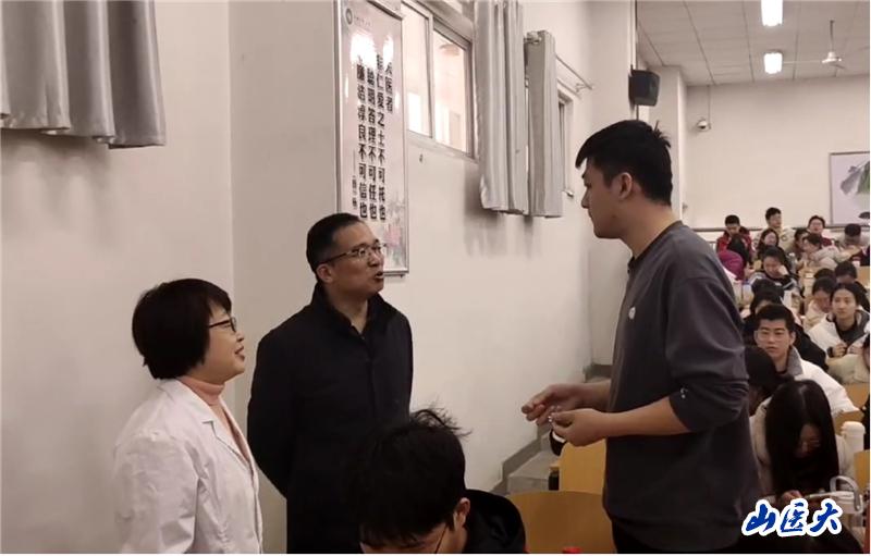 课间时间,焦向英与部分授课教师、学院教学管理人员及学生进行了深入的交流。他关切教师的教学需求,了解教师在课堂上的真实感受、学生学习情况和教学效果,对教师的教学工作给予了充分的肯定,就少数学生不认真听课、无教材、不做笔记、课堂使用电子产品进行学习外活动等问题与老师们进行了深入的交流,希望教师加强课堂组织与管理,多与学生进行教学互动,提高课堂吸引力,不断提高教学效果。