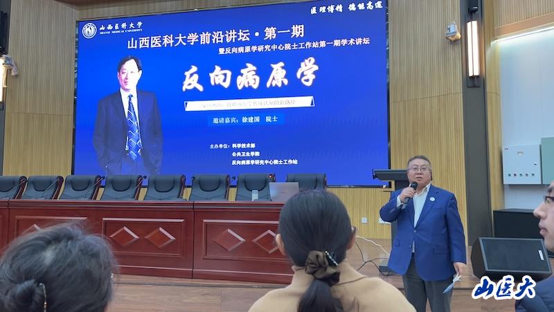 徐建国为在场师生拓宽了科研视野,启发了新的研究思路,在场师生针对讲座内容展开了的热烈讨论。王彤在主持讲话中指出,反向病原学研究中心院士工作站就是把反向病原学的理论有力落实到科研实践中,希望广大师生积极投入到院士工作站的学术研究中,为我校建设高水平公共卫生学院贡献力量,为山西省的新发突发传染病预警奠定有力基础。