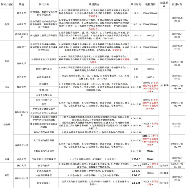 为深入推进人才培养模式改革,加快培养国际化高素质人才,根据学校鼓励支持学生到知名高校交流、参访和实习的相关政策,现将报名2023年寒假出国(境)短期线上线下访学项目通知如下。