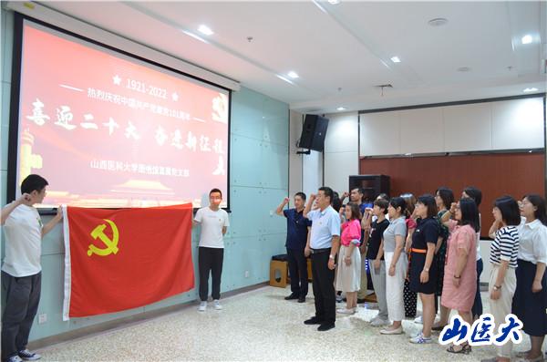 为庆祝中国共产党成立101周年,喜迎二十大胜利召开,7月4日上午,图书馆直属党支部开展“喜迎二十大 奋进新征程”主题党日活动,图书馆全体党员参加本次活动。