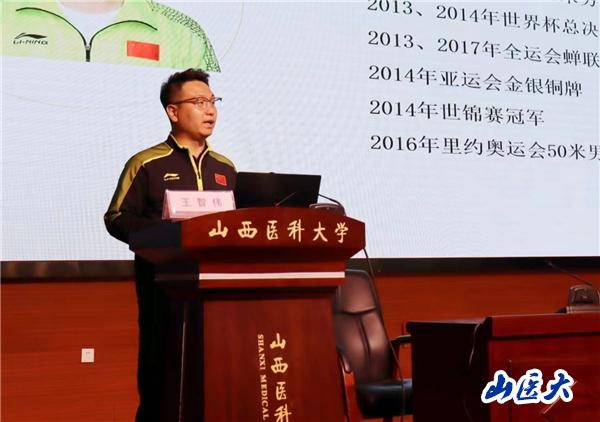 为迎接我校第60届运动会,弘扬体育精神,凝聚奋进力量,5月6日下午,体育教学部(运动康复系)邀请50米男子手枪慢射世界冠军王智伟在中都校区行政楼一层报告厅作专题报告,与山医师生共同分享世界冠军的成长历程与体育精神的传承。校党委副书记王宏伟出席报告会,体育教学部(运动康复系)党总支书记殷凤主持会议,全校300余名师生聆听了报告。