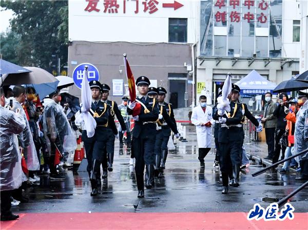 7时30分,由9名身姿挺拔、气宇轩昂的安保人员组成的国旗仪仗队,在激昂的乐声中,迈着铿锵有力的步伐入场。伴随着《义勇军进行曲》,全体人员庄严肃立,面向五星红旗,行注目礼,高唱国歌,五星红旗冉冉升起。随后,国产亚洲精品美女久久久_99久无码中文字幕一本久道_亚洲成AV人影院_亚洲AV影院一区二区三区 狠狠躁夜夜躁人人爽天天不卡_国产激情久久久久影院老熟女_精品性高朝久久久久久久第二临床医学院院歌奏响,红十字旗、院旗同时飘扬在二院上空。