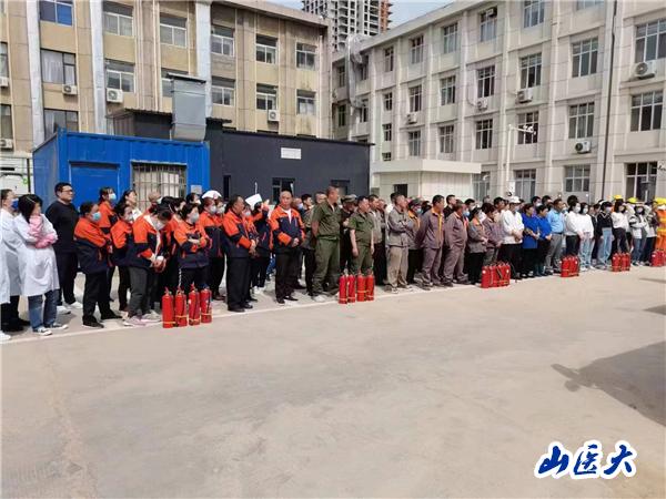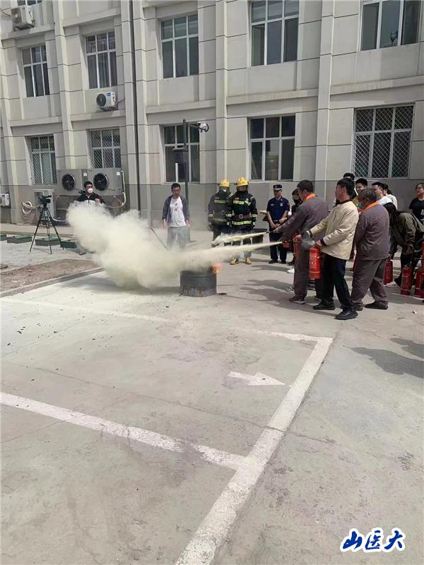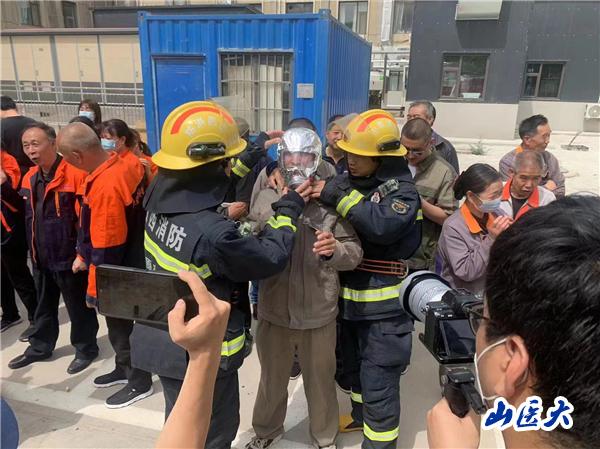 随着警铃响起,伴着滚滚浓烟,所有学生从公卫楼有序跑出,学校应急队及时赶赴火场,开展火情勘测及人员疏散……5月25日上午,我校迎泽校区按照预案联合属地消防队开展了一场消防逃生演练及技能培训。