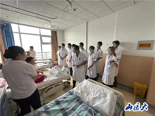 7月11日两校学生正式进入介休市人民医院见习,由介休市人民医院主办了欢迎仪式和岗前培训,并按照1+3的模式给每三名学生分配一位带教老师。