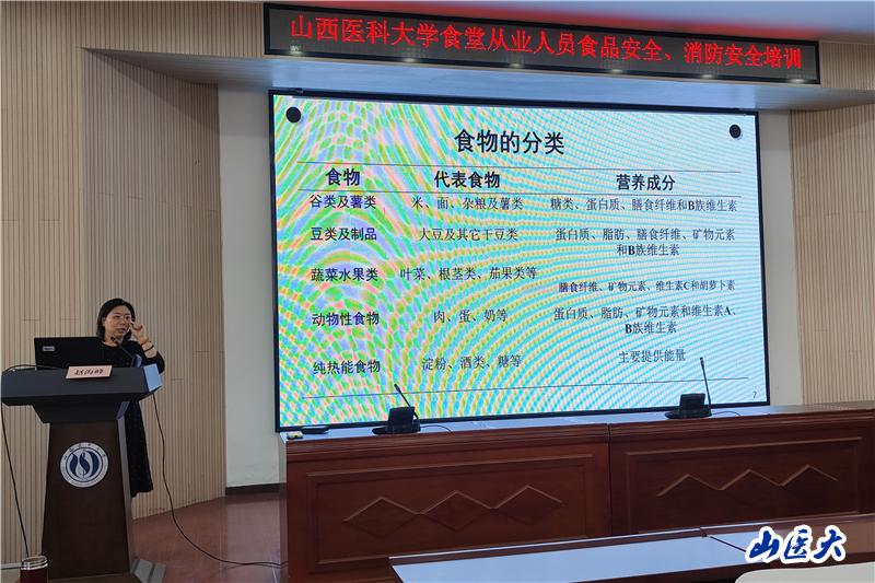 为了深入贯彻落实《中华人民共和国食品安全法》及其实施条例、《企业落实食品安全主体责任监督管理规定》和学校关于进一步做好消防安全工作的通知精神,进一步提升食堂从业人员的专业素养和安全意识,3月2日下午,后勤保障部联合武装保卫部、科技产业开发中心在中都校区基础医学院报告厅举办了食品安全和消防安全培训。迎泽校区、中都校区食堂和大学生服务中心的从业人员、管理人员和原材料供货人员等参加了培训。晋中市市场监管综合行政执法队二分队队长王晓光、学校科技产业开发中心主任高永红、后勤保障部党总支副书记杨艳宏、武装保卫部消防管理中心主任李学智到会指导,会议由后勤保障部饮食管理科科长牛拴成主持。
