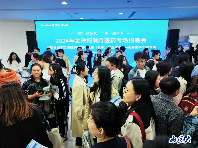 金秋时节,为助力2025届毕业生尽早顺利就业,促进各地市、基层医疗卫生单位对急需紧缺医疗专业人才的配置,10月18日下午, 我校在山西省人力资源市场一层举办了2025届毕业生秋季招聘月专场招聘会。来自省内外49家医疗、生物科技、制药及相关领域用人单位前来招贤纳才,合计提供1400余个就业岗位。我校2025届2000余名毕业生参加了招聘会。