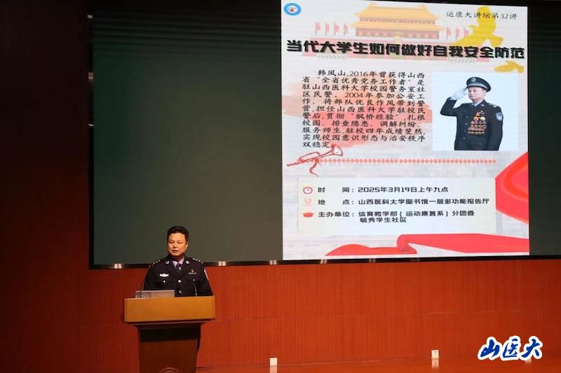 本次活动邀请晋中市公安局驻校民警韩凤山警官以“当代大学生如何做好自我安全防范”为题进行了专题安全宣讲。韩警官重点围绕电信诈骗、情感纠纷、财物盗窃等与大学生校园生活密切相关的安全问题,深入剖析了各类安全隐患的危害,通过典型案例分析,详细讲解了应对不同安全风险的策略,并特别强调大学生作为易受侵害群体,必须提高警惕,增强自我保护意识,避免遭受不必要的损失和伤害。