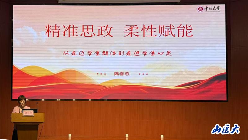 本次培训邀请中北大学仪器与电子学院副院长魏春燕作专题报告。魏春燕参加工作19年以来一直奋战在辅导员工作一线,曾获第三届山西省高校辅导员职业能力大赛金奖、第十五届全国“高校辅导员年度人物”等多项荣誉。在题为《精准思政 柔性赋能》的报告中,她围绕“初心·使命”“固本·务实”“团结·协作”三个主题分享了实践经验。她阐述了辅导员如何以学生需求为导向构建全覆盖、分层次、个性化的育人矩阵,实现“从走近学生群体到走进学生心灵”的深度育人。她倡导在心理健康教育与价值引领之间找到联动支点,让学生既能“被看见”也能“被成就”。