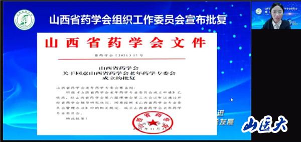 闫娟娟宣读了《山西省药学会关于同意山西省药学会老年药学专委会成立的批复》。