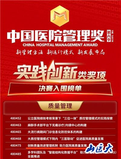 喜讯!第一医院在第六季中国医院管理奖大赛中再获佳绩