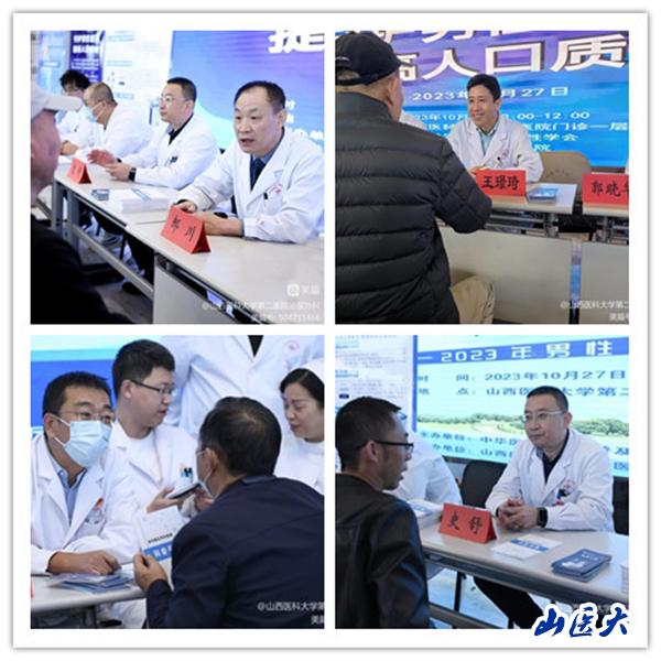 参加此次义诊的还有我校第二医院泌尿外科王璟琦教授,郭晓华副主任医师,史舒副主任医师,王振兴副主任医师,李承勇副主任医师,护士长陈翠兰,裴亮、郭强、张九丰、张俊龙等主治医师。专家们热情为前来咨询的男性朋友解答健康问题,普及男性健康相关知识。此次义诊得到了群众的广泛认可和好评。山西健康之声广播还线上直播了此次义诊活动。