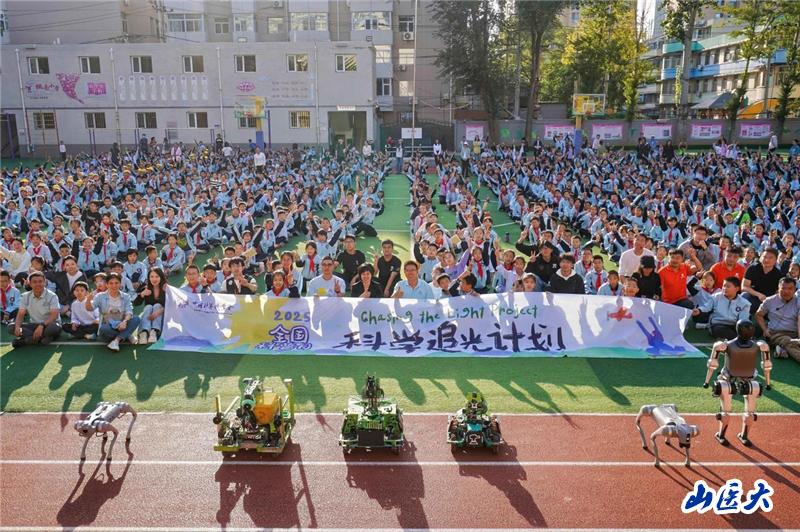 9月25日,在新修订的《中华人民共和国科学技术普及法》实施后的首个全国科普月,由中国计算机学会(CCF)主办的“科学追光计划”落地太原,我校附属第一医院神经外科医生王明宇领衔专家学者与科技志愿者团队,走进太原市迎泽区桃南小学,为1000余名师生进行了“与AI共舞,脑机互联”主题科普讲座,通过具身机器人互动、脑机接口演示、智能装备体验等多元环节,让前沿科技走进校园,在孩子们心中播下创新的种子。