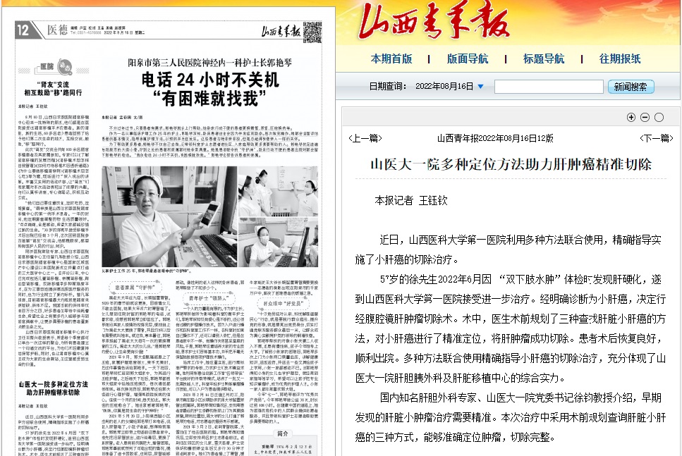 山西青年报︱山医大一院多种定位方法助力肝肿癌精准切除