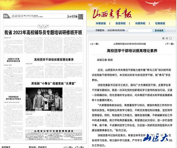 山西青年报 | 高校团学干部培训提高理论素养