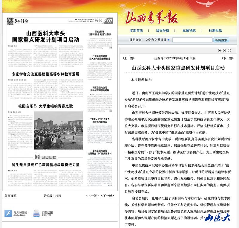 山西青年报 | 山西医科大牵头国家重点研发计划项目启动
