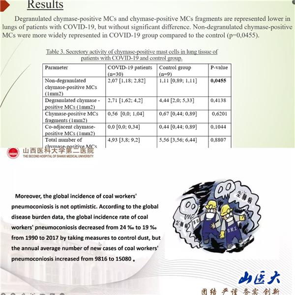随后,我校第二医院任源和张瑶同学,用流利的英语分别分享了《双歧杆菌通过调控SOCS3-JAK2-STAT3-HNF1a信号通路减轻肺纤维化》和《肺部微生物在煤工尘肺和矽肺中作用及机制探究》,发言得到与会专家的高度评价。