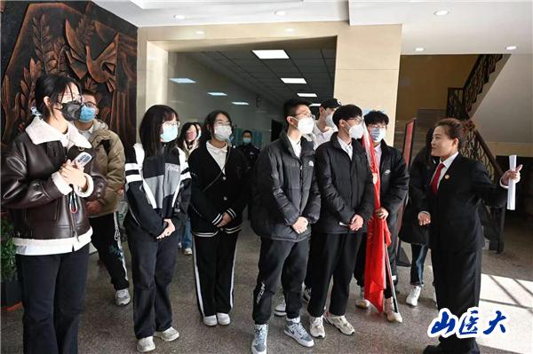 3月2日上午,基础医学院分团委、学生会组织带领12名青年志愿者赴晋源法院参观学习,近距离感受司法便民利民服务,旁听案件审理,“沉浸式”感受法院工作氛围。上午九时许,在法院干警孟璇的带领下,同学们聆听了晋源区人民法院的历史沿革、人员构成等基本情况,有序参观了诉讼服务中心、调解室、羁押室及各个法庭等场所,观看了少年法庭宣传片。每到一处,同学们都认真听取讲解员的介绍,了解晋源区人民法院在一站式多元解纷、文化建设、审判执行工作等方面取得的丰硕成果以及便民措施带来的人文关怀和司法温情。