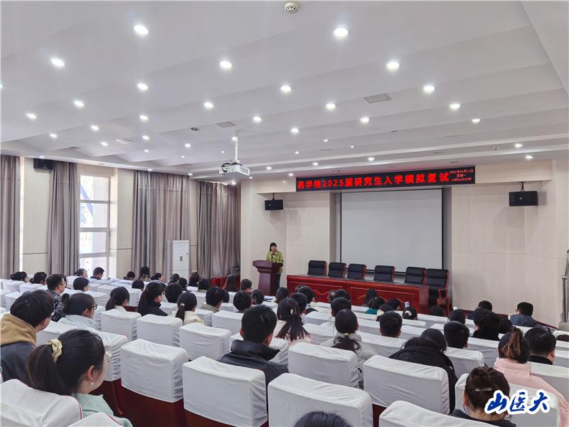 为助力考研学子全面熟悉研究生复试流程,切实提升临场应变能力,3月17日,药学院在中都校区举办了“2025年研究生入学模拟复试演练”活动。药学院领导、导师代表以及80多名学生齐聚一堂,共同参与这场具有重要意义的活动。思想政治辅导员姜敏主持活动。