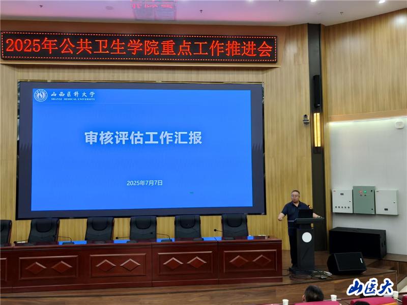 公共卫生学院院长王彤在讲话中指出,本轮审核评估是教育部立足教育强国战略实施的关键举措,对构建"三全育人"体系、落实"五育并举"要求具有重要意义。他强调,全院教师要深刻把握“以评促强”内涵,聚焦立德树人根本任务,统一思想、形成共识、迅速行动,进一步深化细化落实审核评估工作各项任务,对标自查、对标总结、对标提升,以审核评估为契机全面提升人才培养质量。